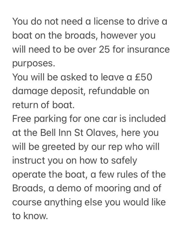Norfolk Broads Cruiser offers the following activities / services (charges may apply):