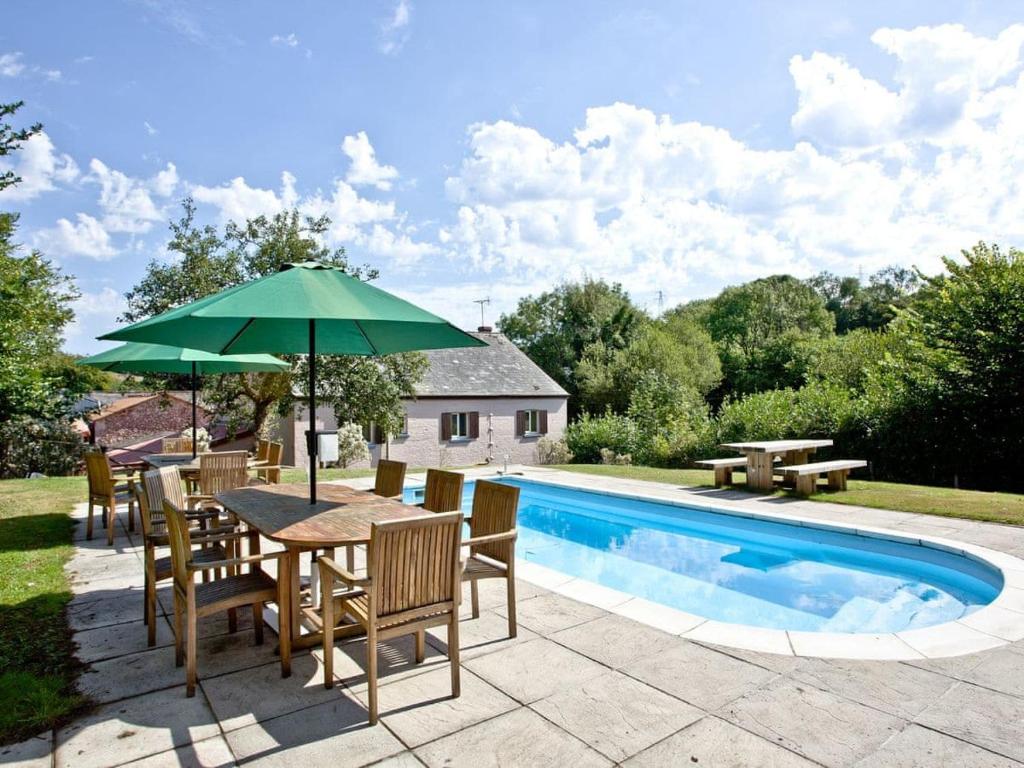 A garden, barbecue and an outdoor swimming pool are available at the holiday home.