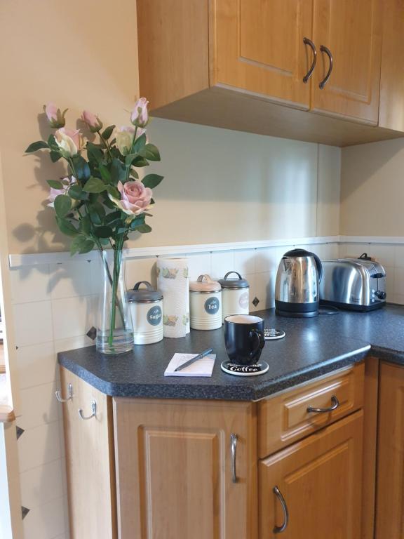 An oven and microwave are also available, as well as a kettle.