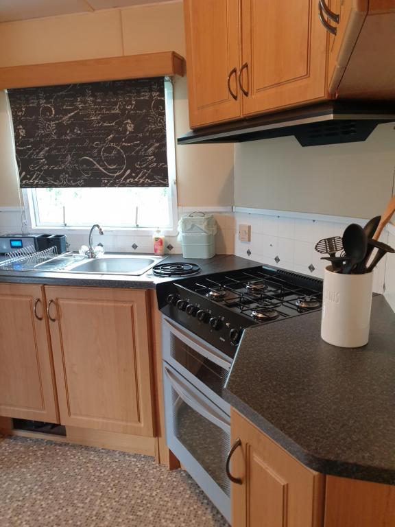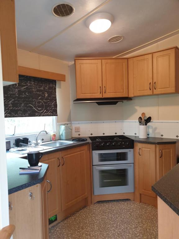Situated in Parc, Isle of Anglesey, Railway Cottage Caravans No2 feautres free WiFi and units fitted with a kitchen, seating area, patio and flat-screen TV.
