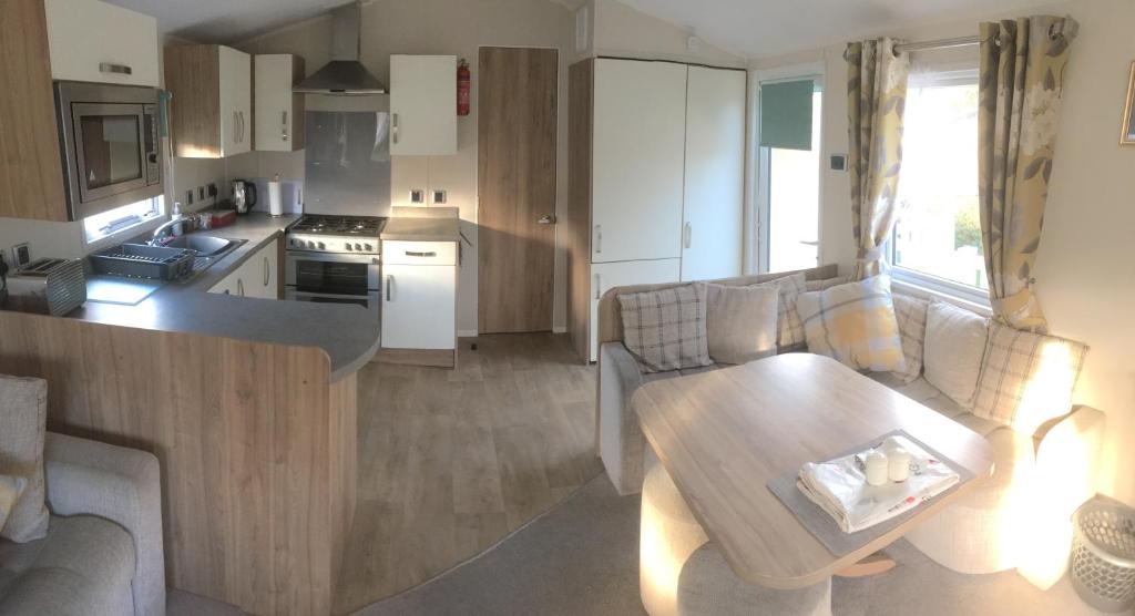 The camping provides guests with a patio, garden views, a seating area, satellite flat-screen TV, a fully equipped kitchen with a microwave and a fridge, and a private bathroom with shower. An oven and toaster are also featured, as well as a kettle.