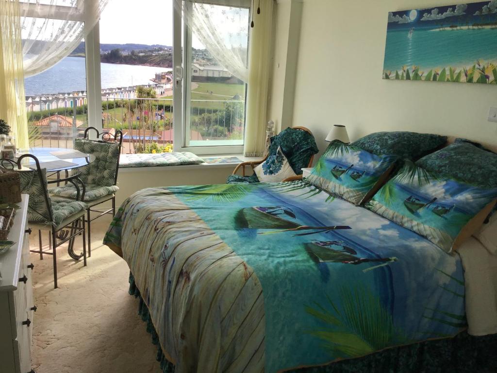 Come and stay in our home by the sea. A unique opportunity to stay in a beautiful en-suite bedroom with magnificent sea views. Guests can sit and enjoy the view from anywhere in the room including the bed!! The room also has a great view across the park at Goodrington. As the room faces South, enjoy the sunrise and all day sun. You will find a basket with some breakfast items and a kettle for tea/coffee making. It is a two minute walk down the slope to our car park and a private gate to the beach. Please note, there is a 2 night minimum stay. During July, August, Christmas and Easter, there is a 3 night minimum stay. A maximum of 2 adults over 21 yrs only. Check in time is between 15.00 and 20.00. Please note for a check in outside of these hours, prior arrangement is required. Unfortunately, the room is not suitable for guests in wheelchairs.